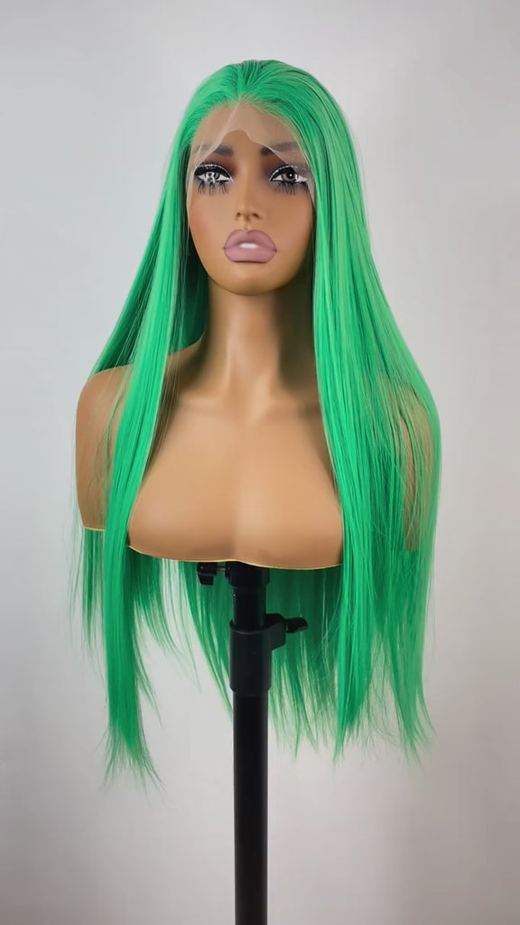 Peluca de color frontal de encaje de fibra recta---13*4---Color verde cobre