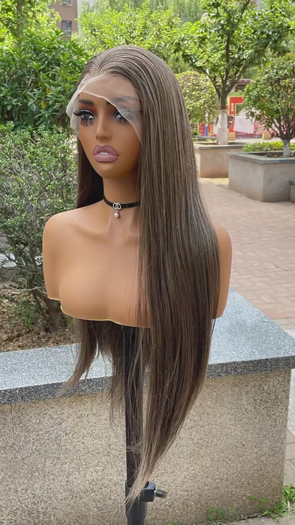 Peluca de color frontal de encaje de fibra recta---13*4---color marrón claro