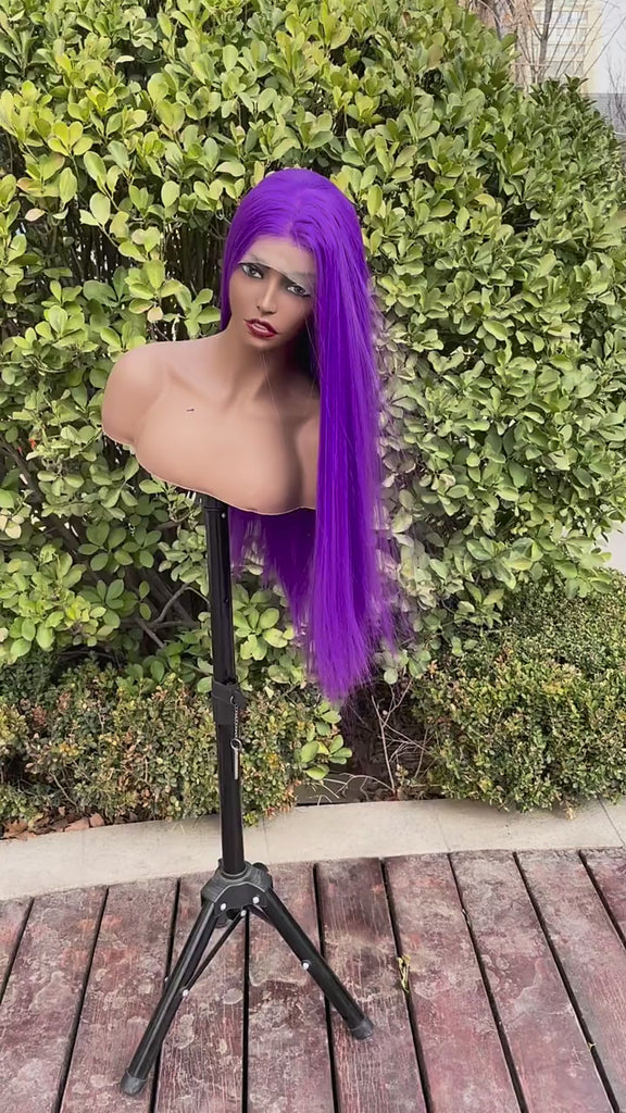 Peluca de color frontal de encaje de fibra recta---13*4---color morado claro