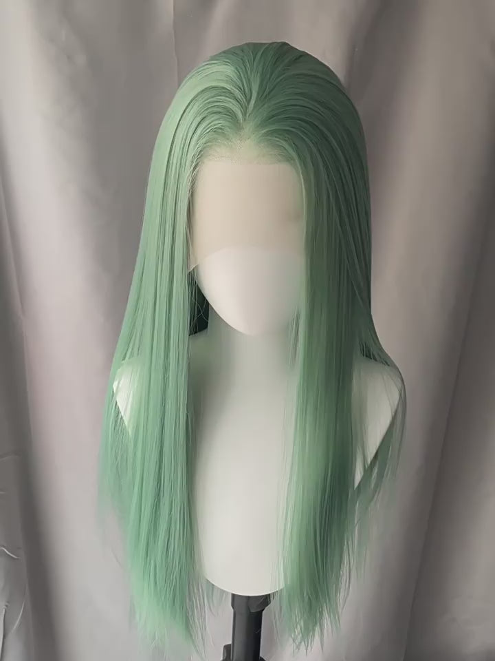 Peluca de color frontal de encaje de fibra recta---13*4---color verde menta
