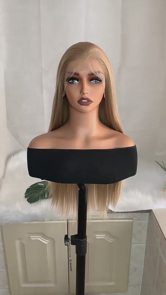 Peluca de color frontal de encaje de fibra recta---13*4---Color oro arena