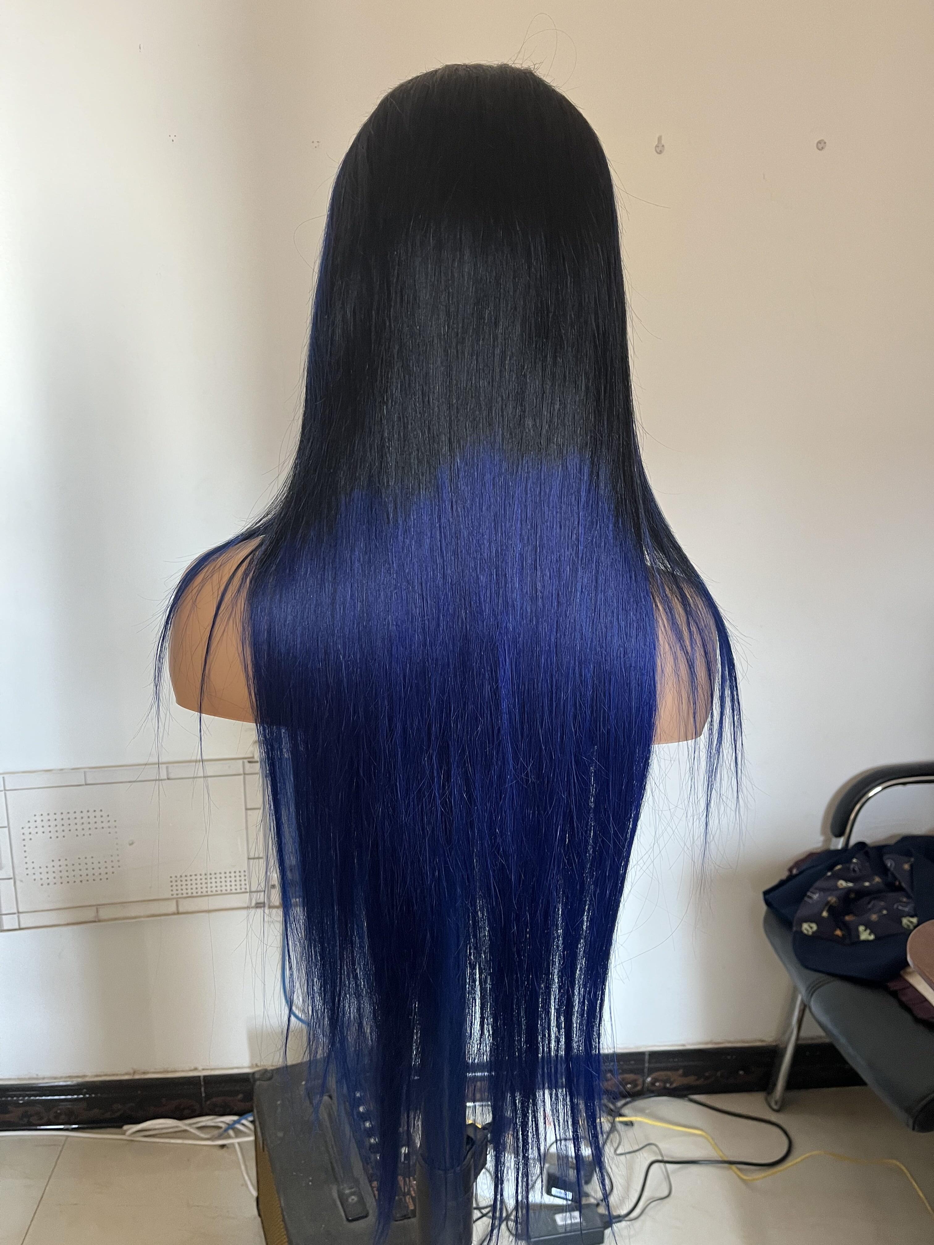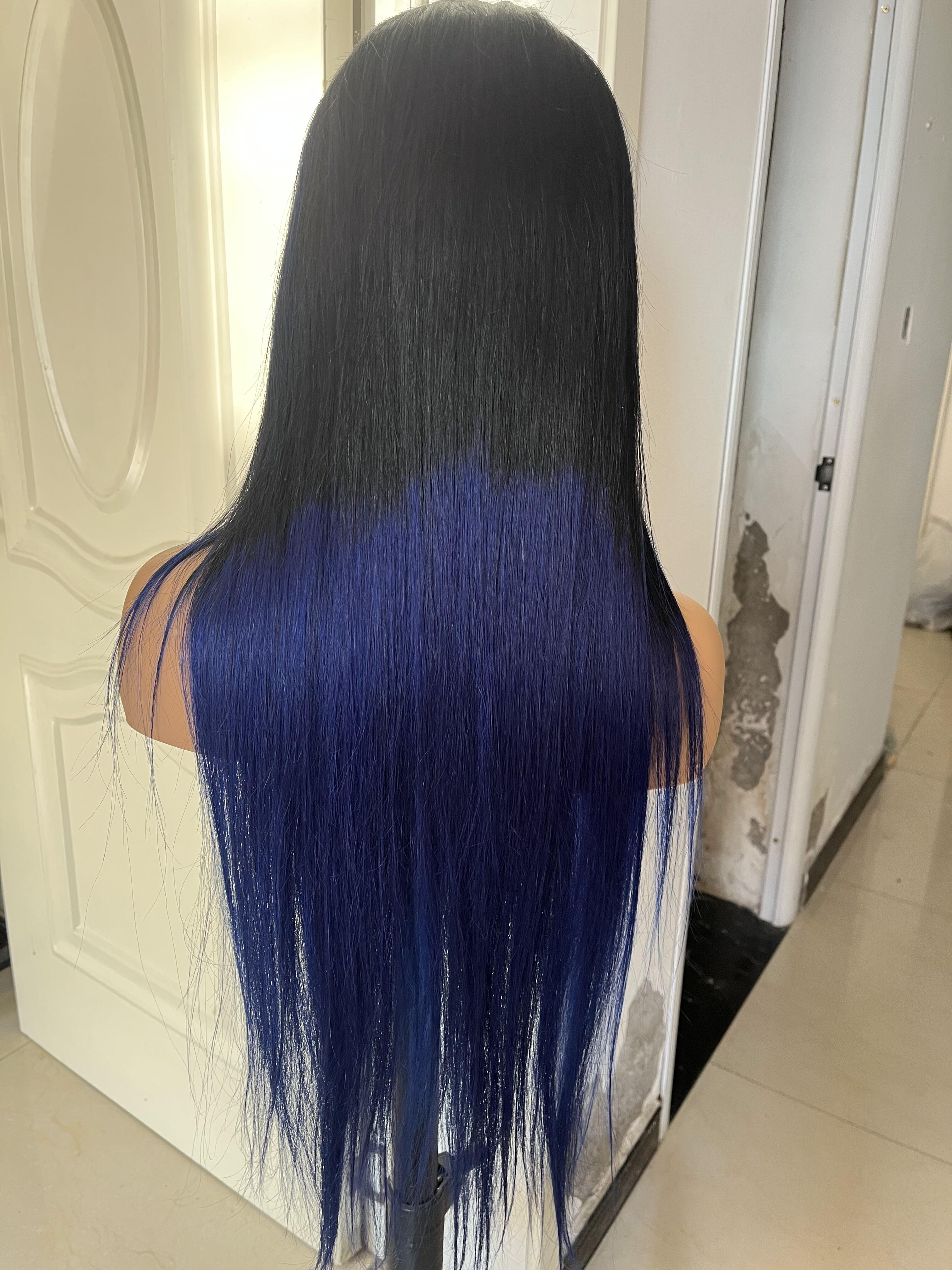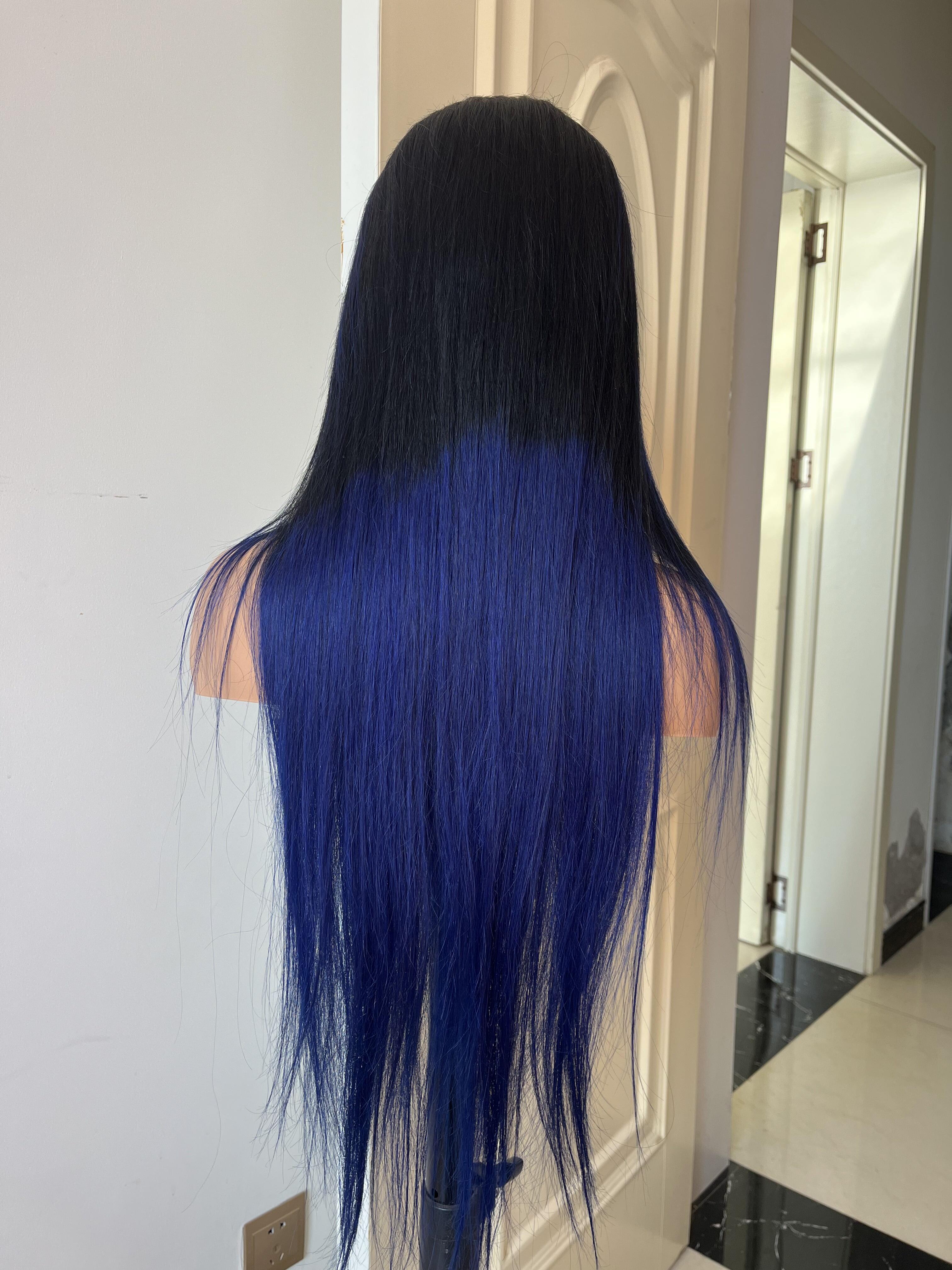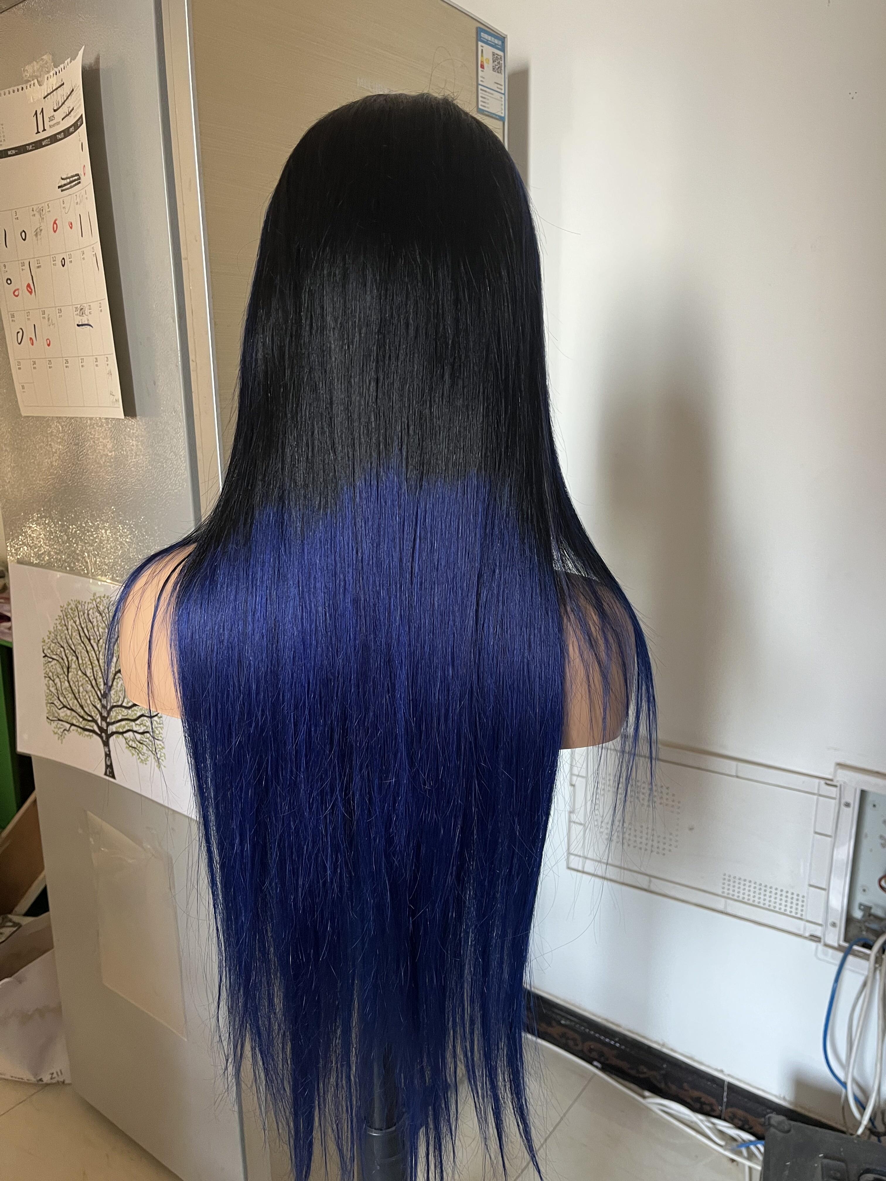 Human Hair Wig 12A straight ombre black/ dark blue color