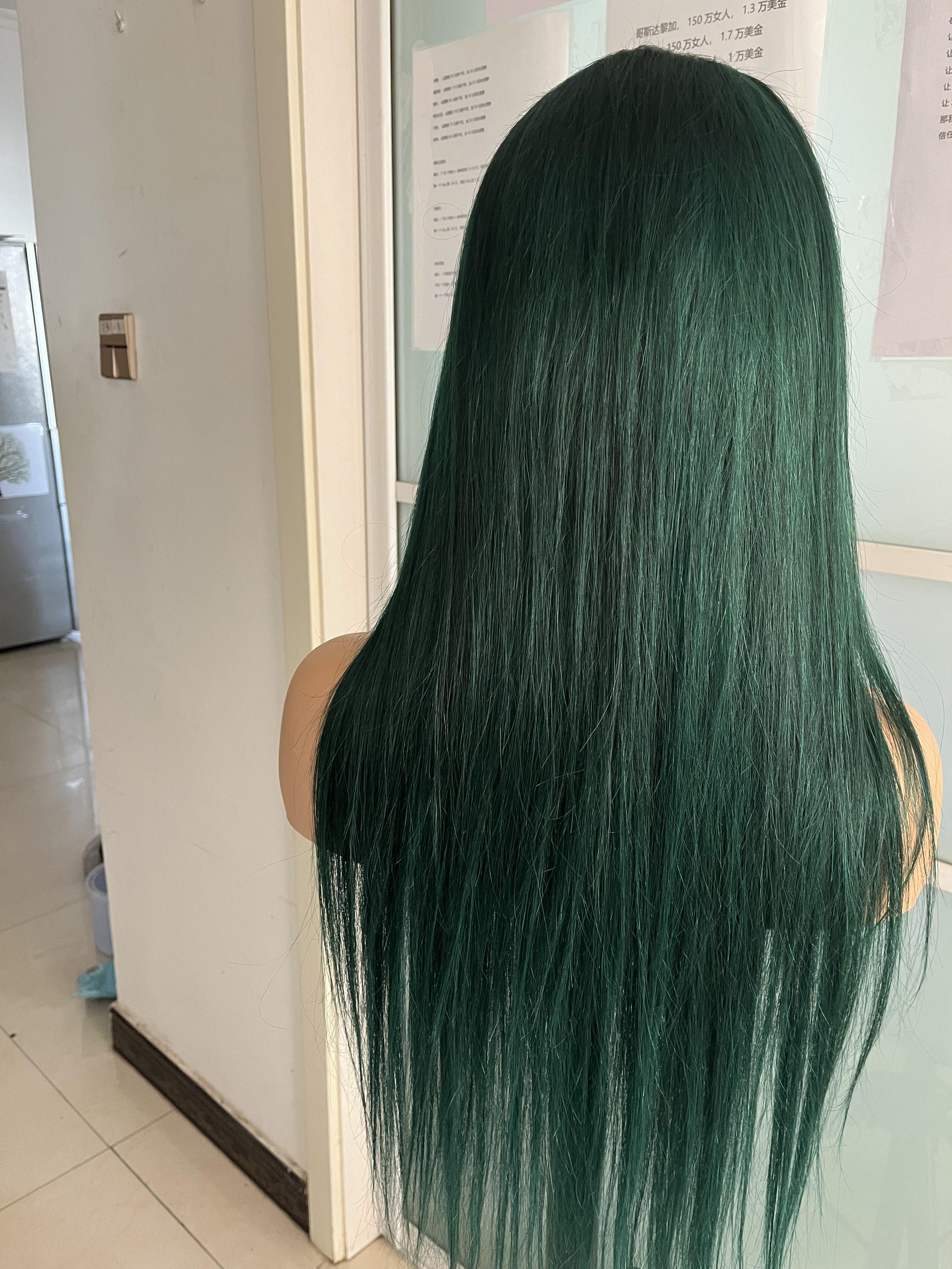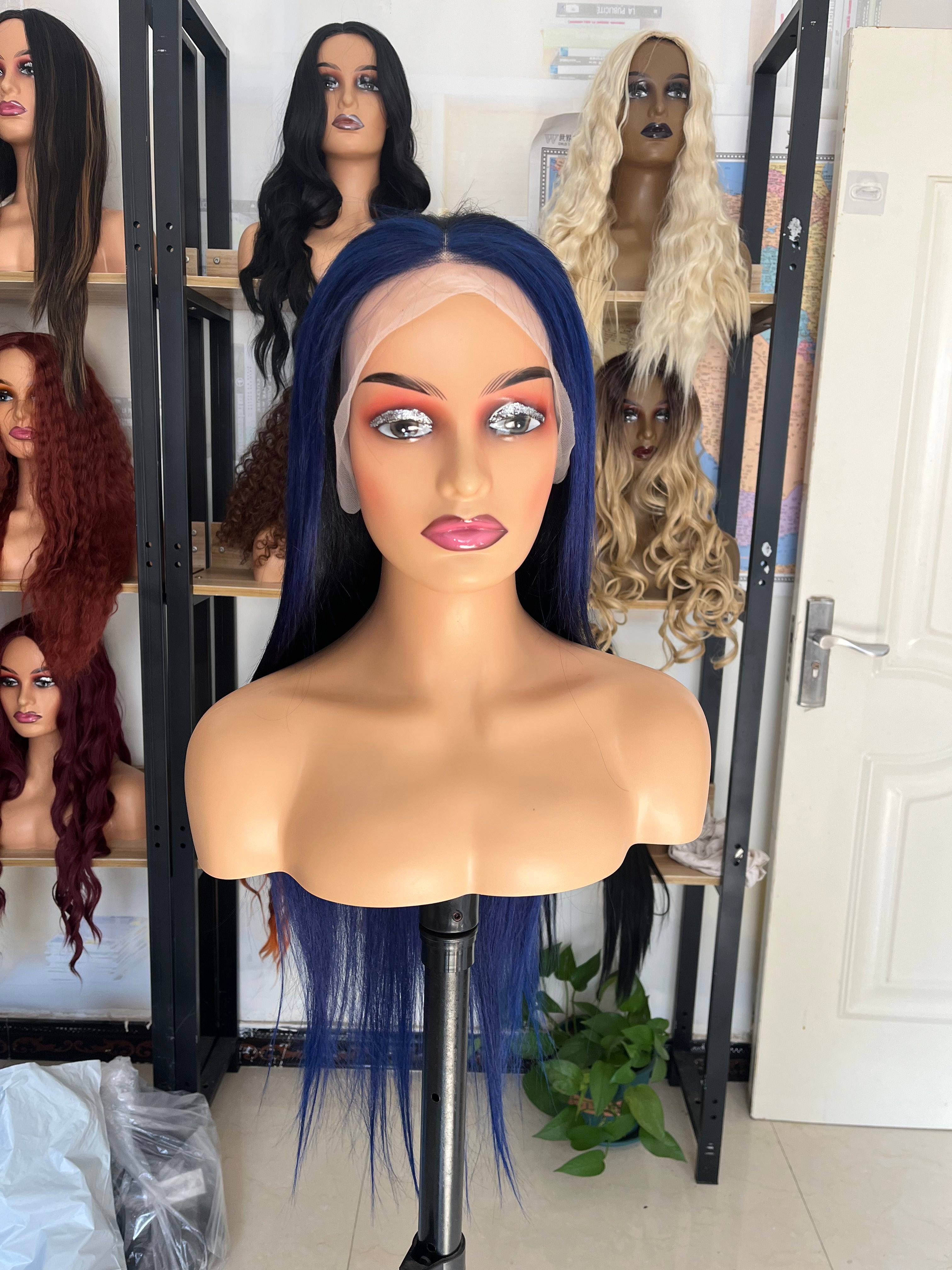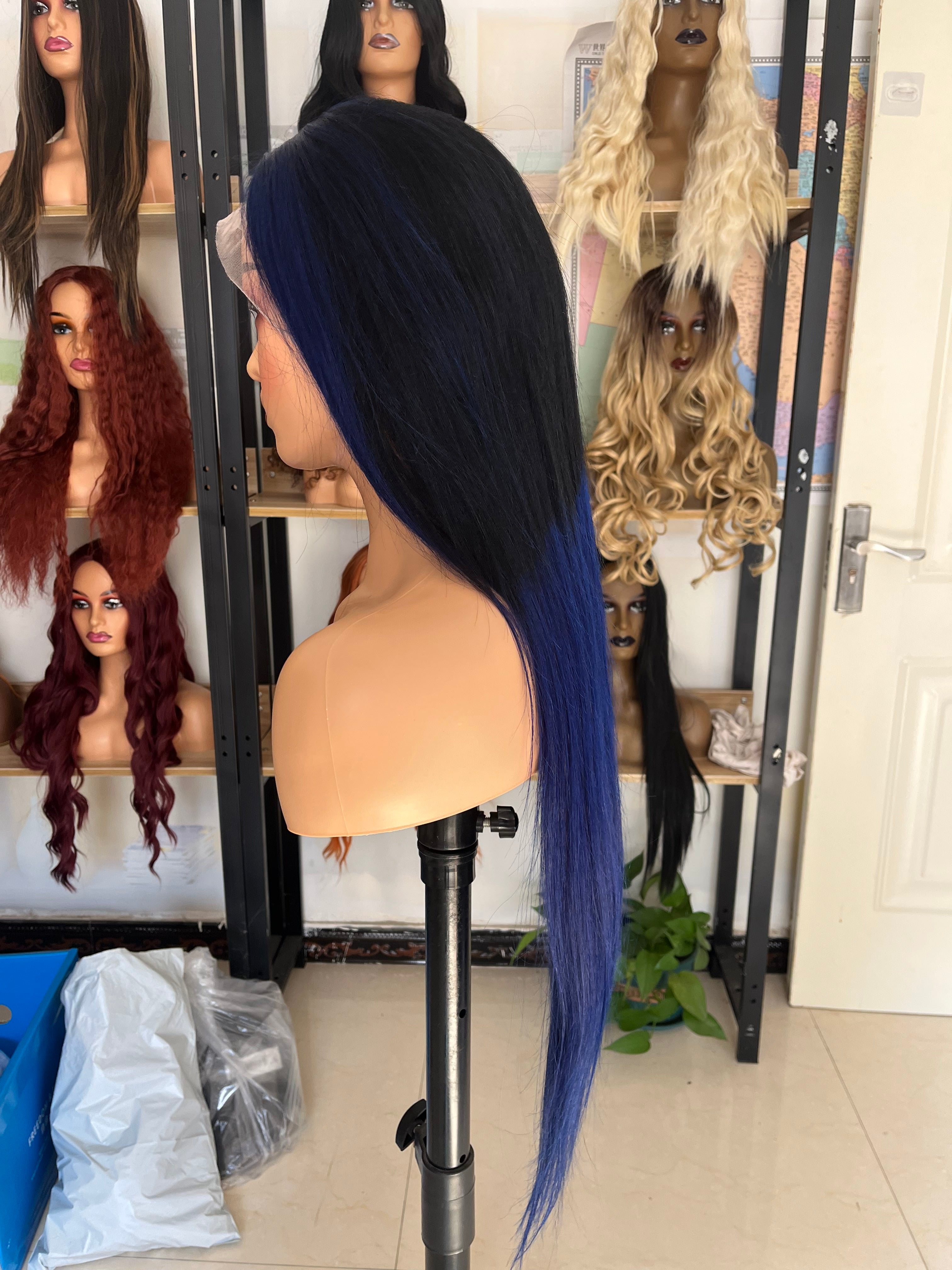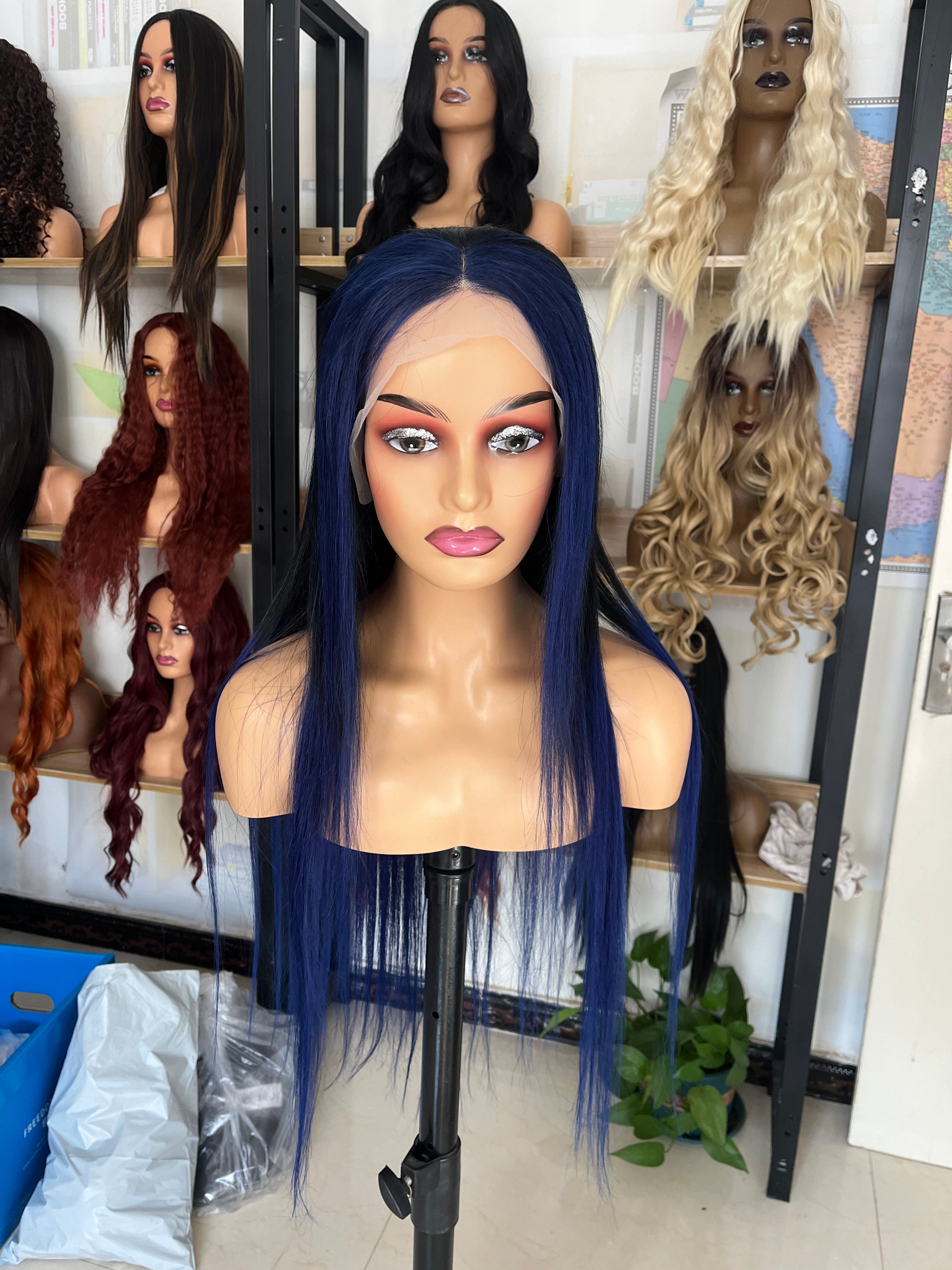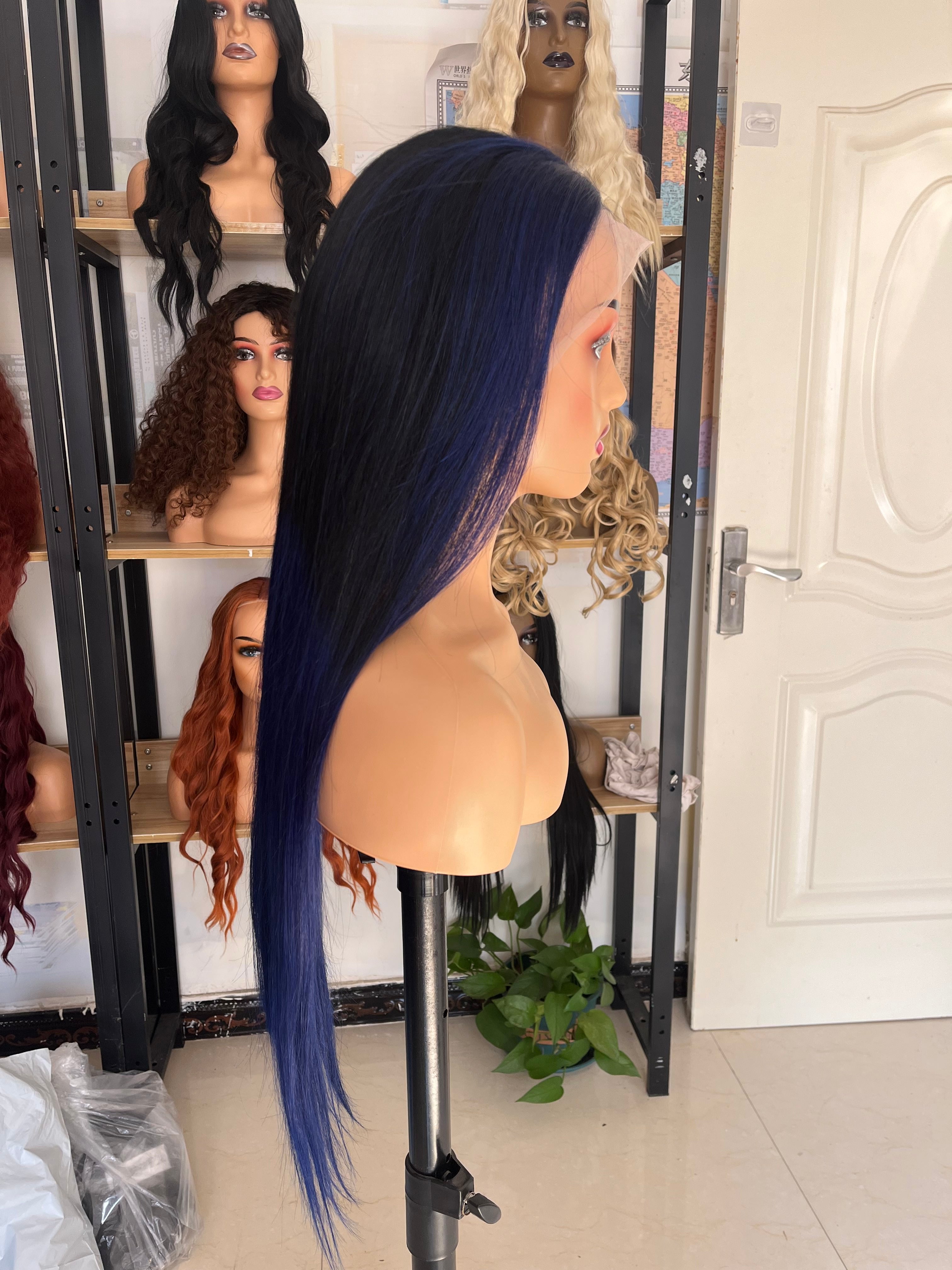 Human Hair Wig 12A straight ombre black/ dark blue color
