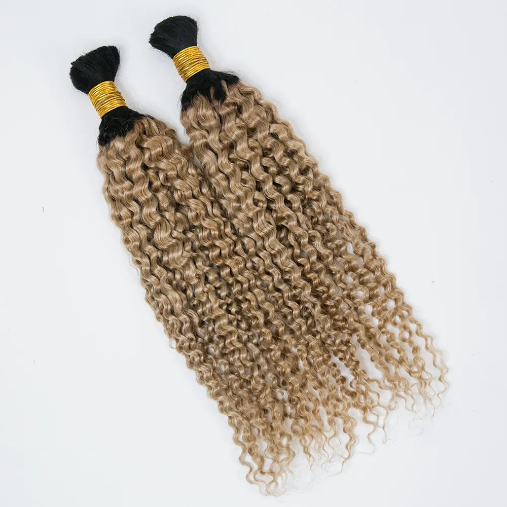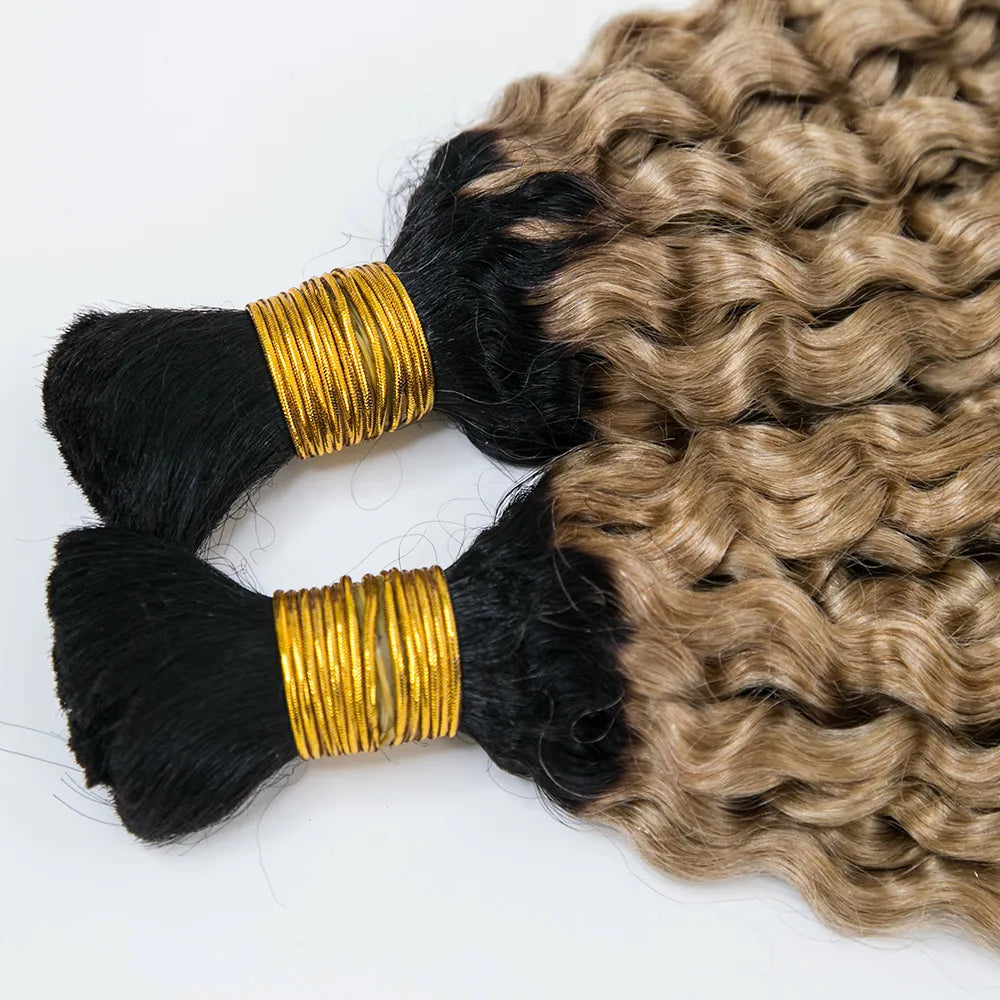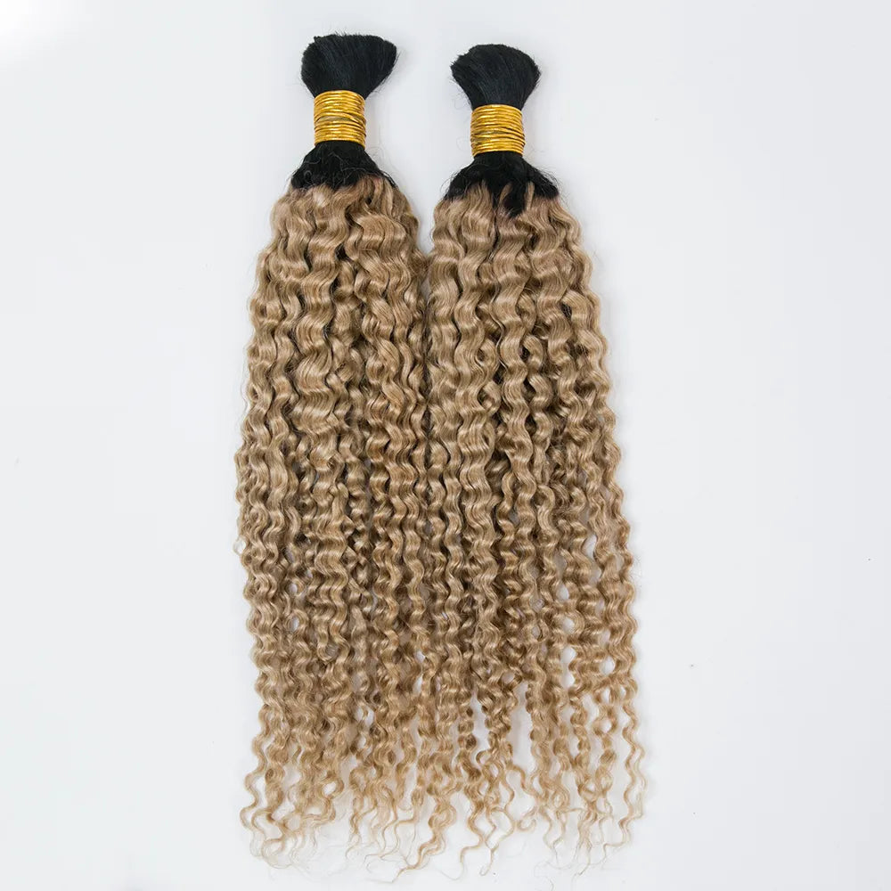 Curly wave ombre #1B/27 color 15A human hair bulk for braiding