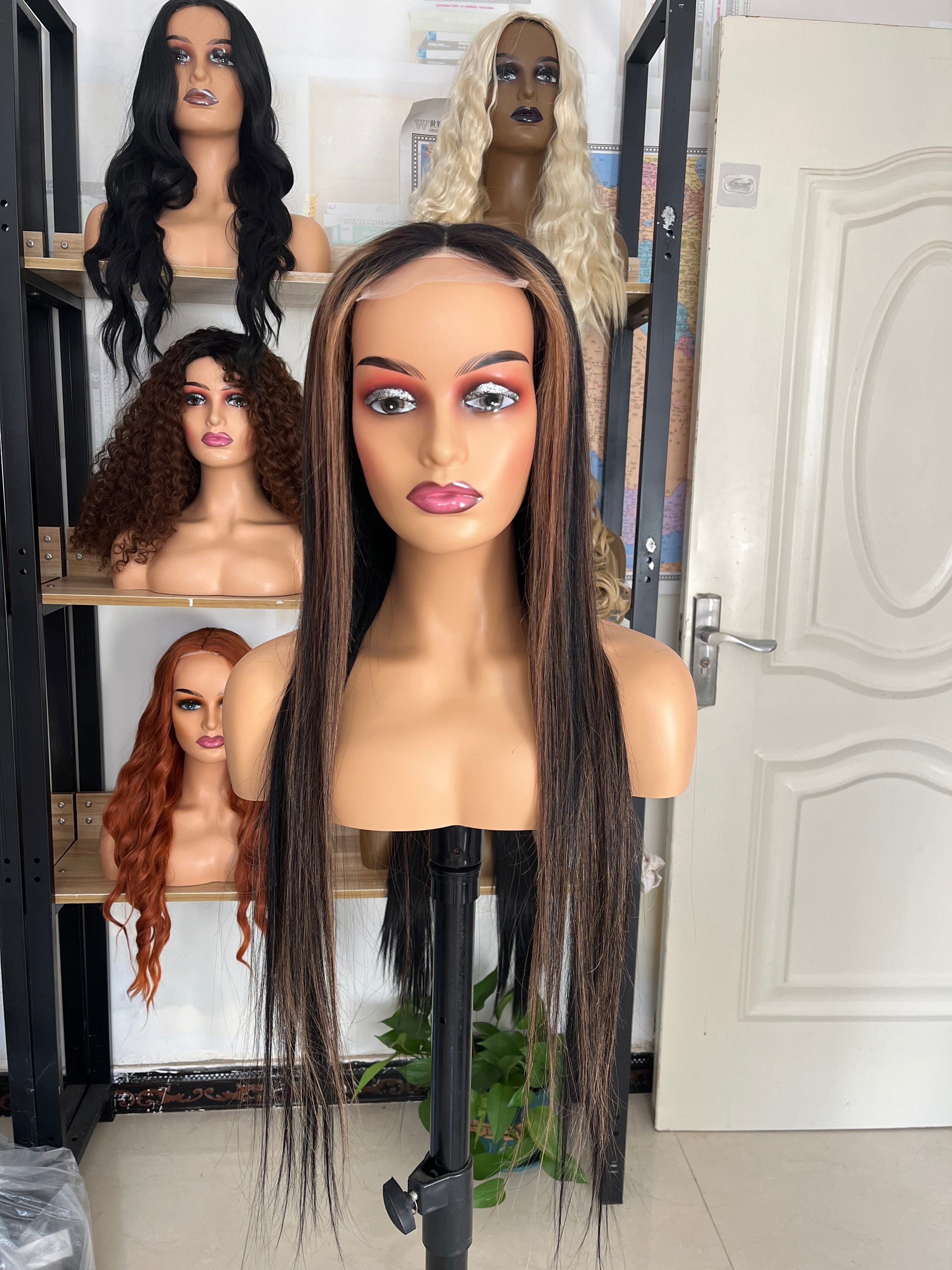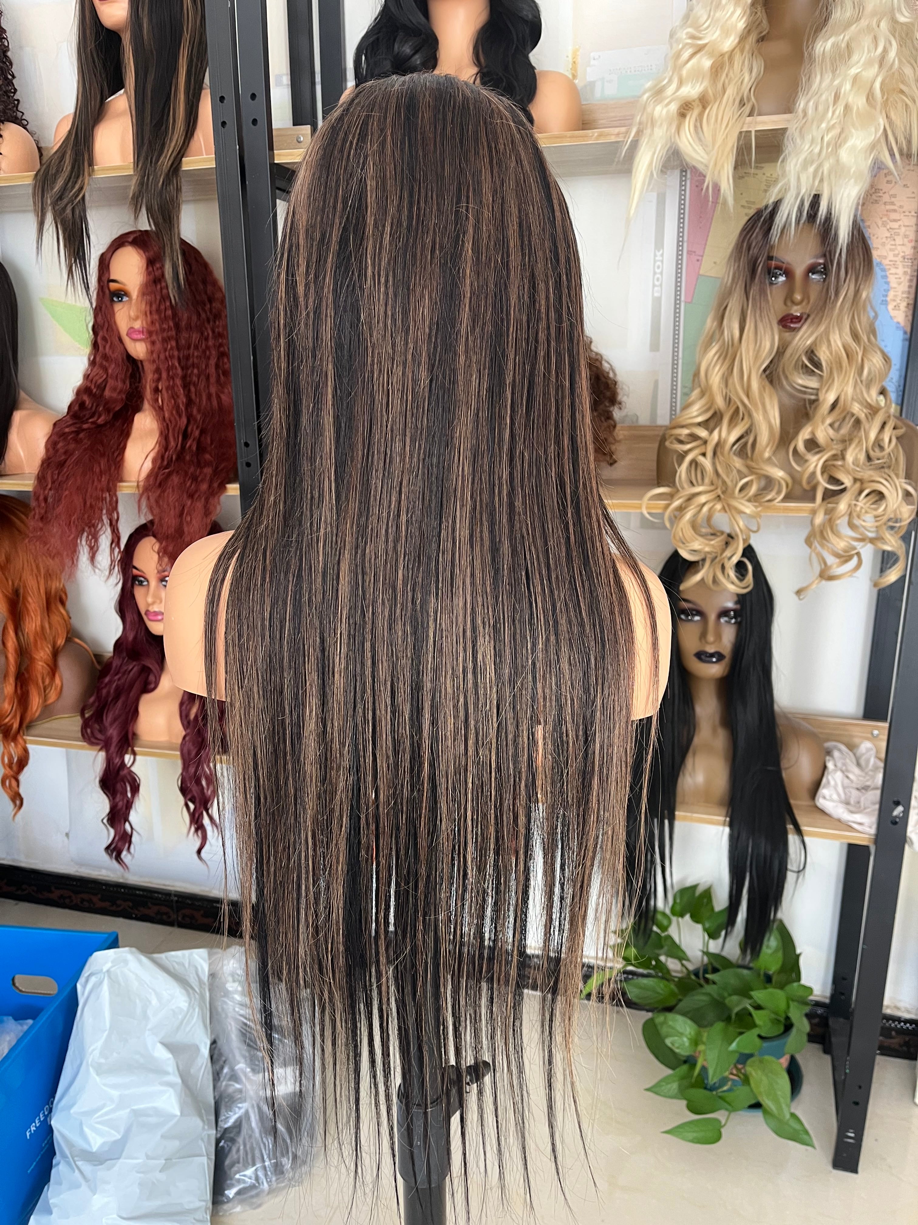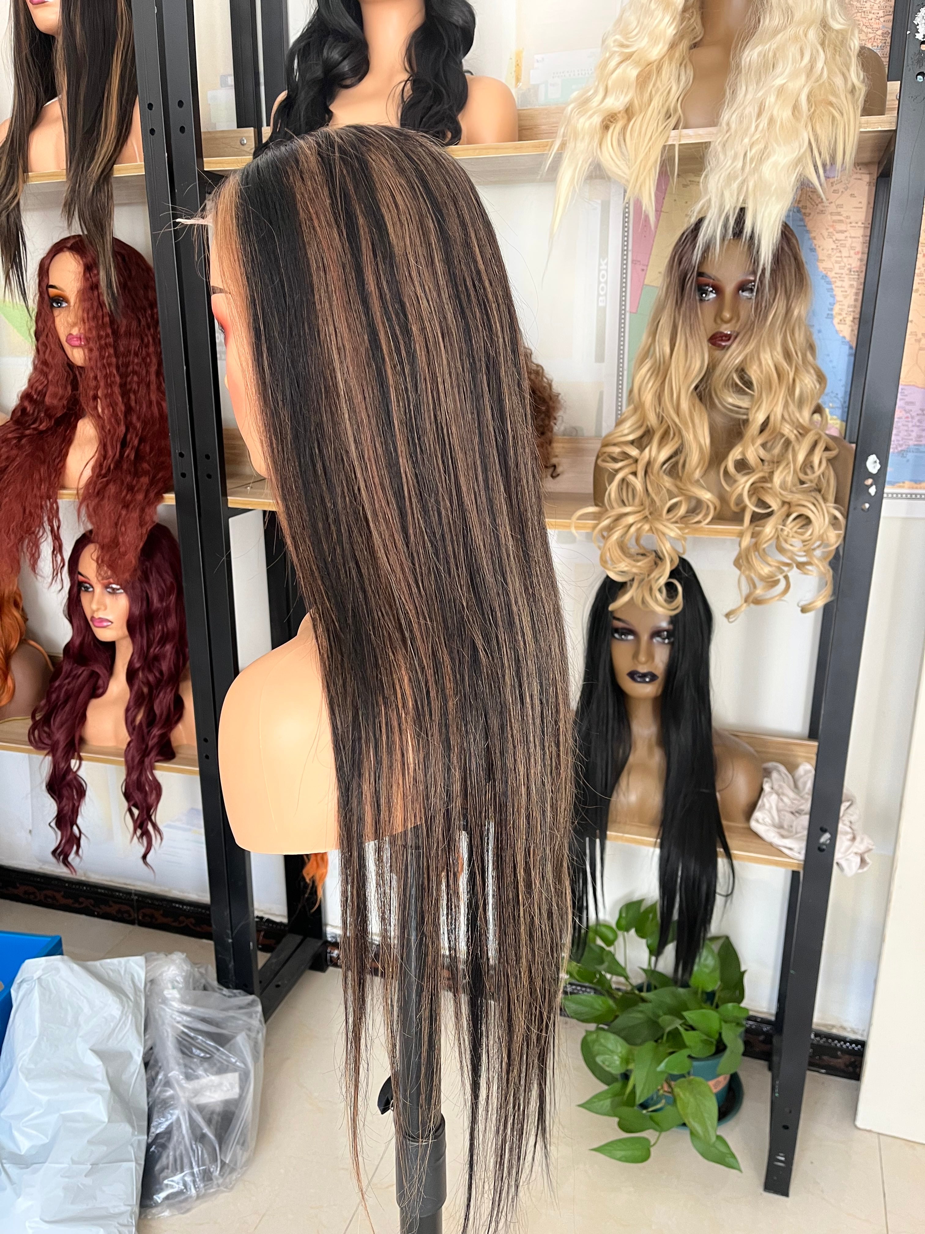 Human Hair Wig 12A straight mixed color 1b/30 color