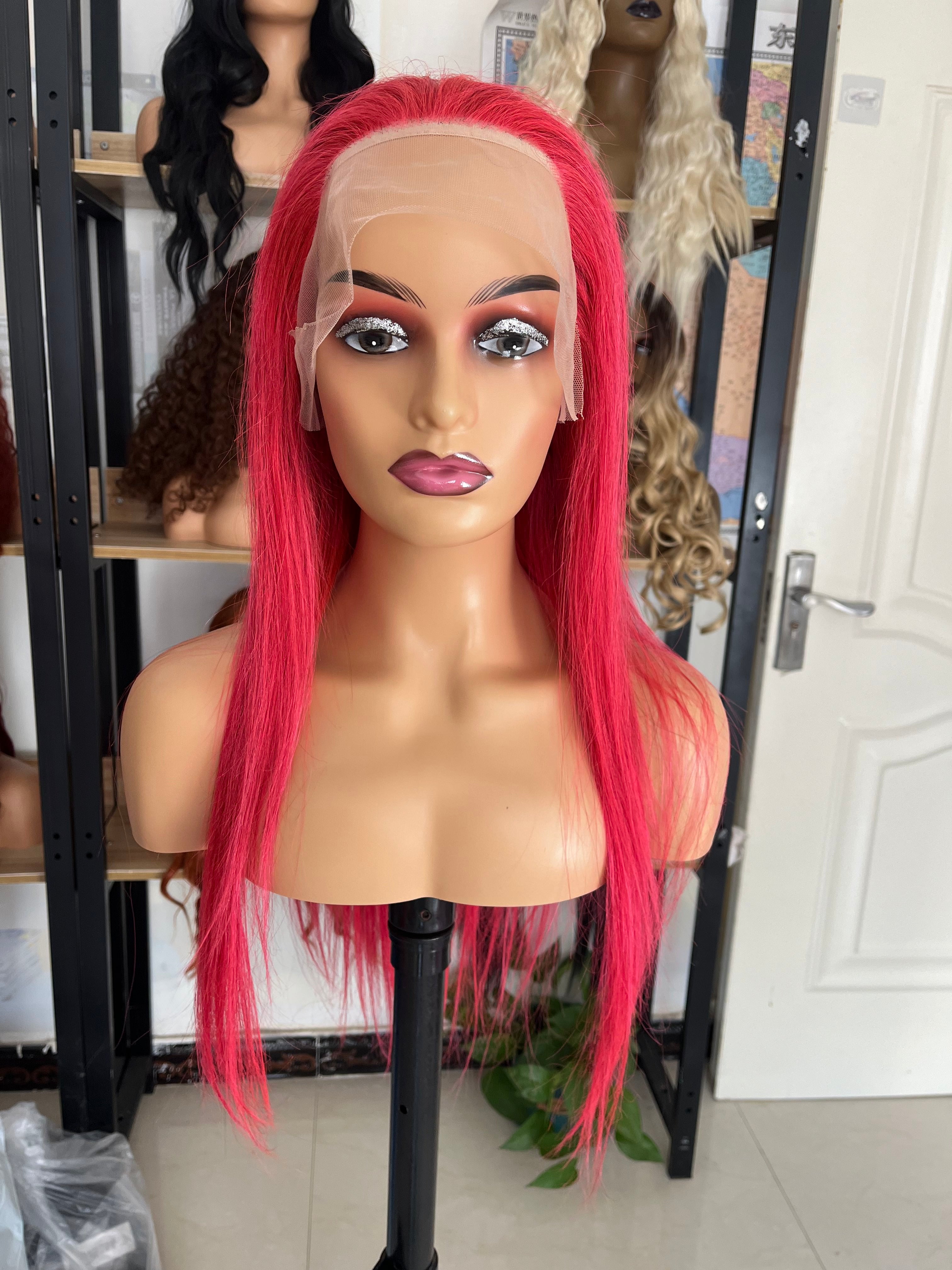Human Hair Wig 12A straight pink color