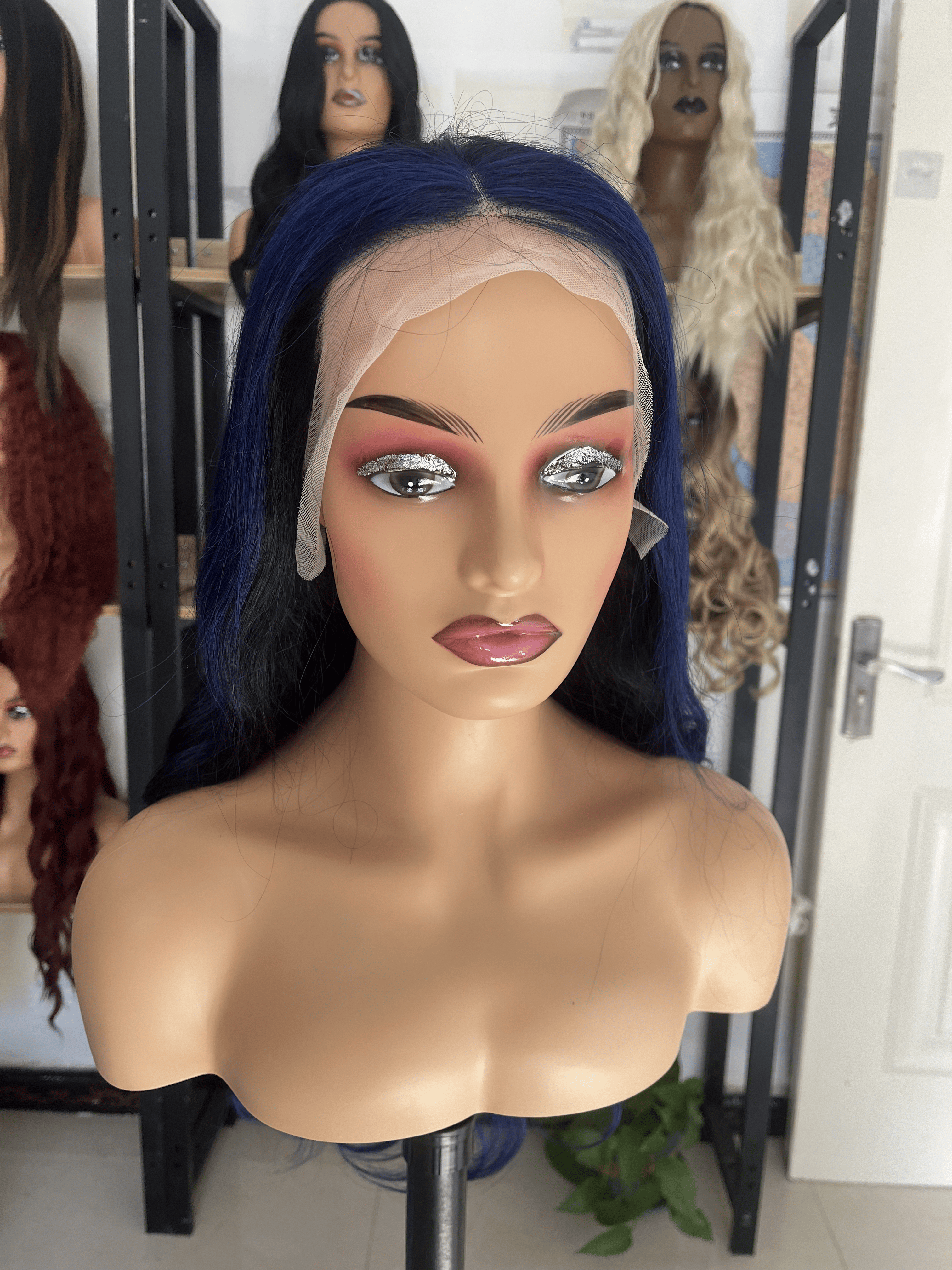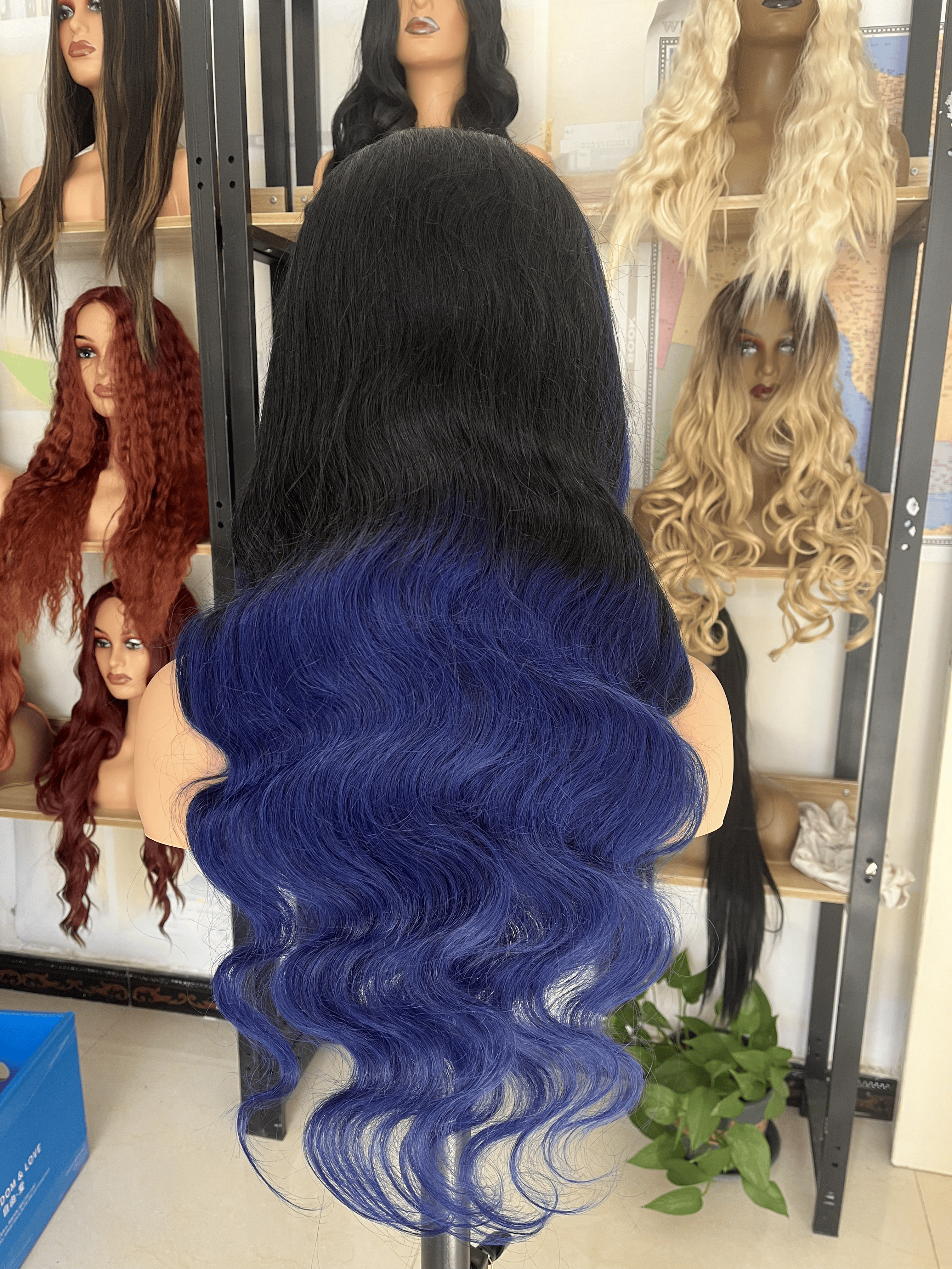 Human Hair Wig Body Wave ombre 1B/Blue color