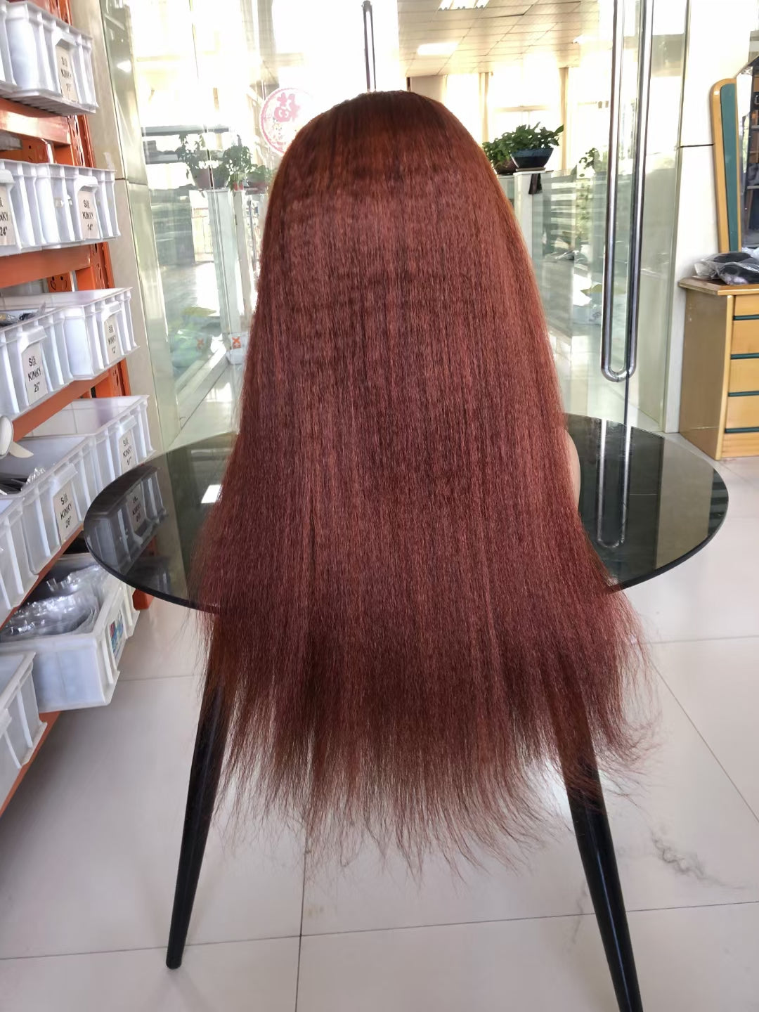 Kinky straight #33 reddish brown color lace Frontal 13x4 Virgin Human Hair Wig 15A