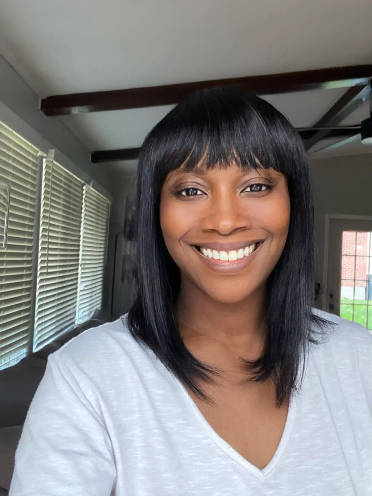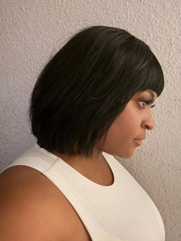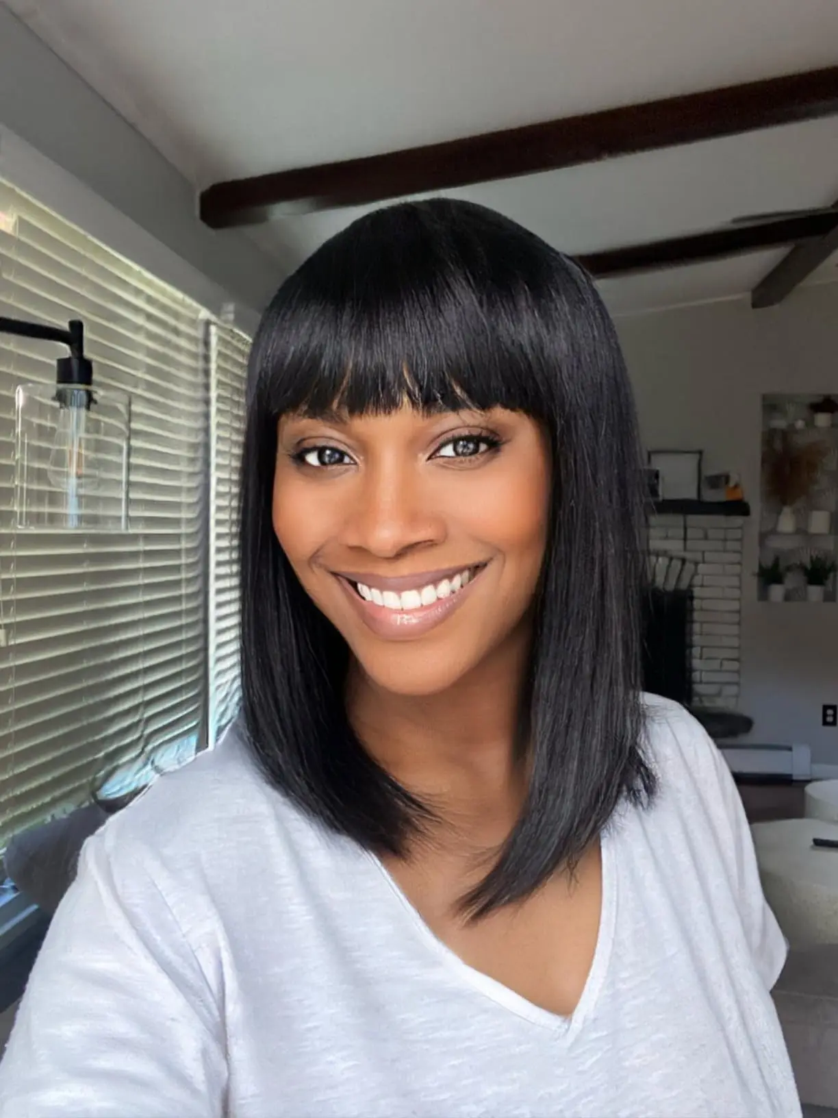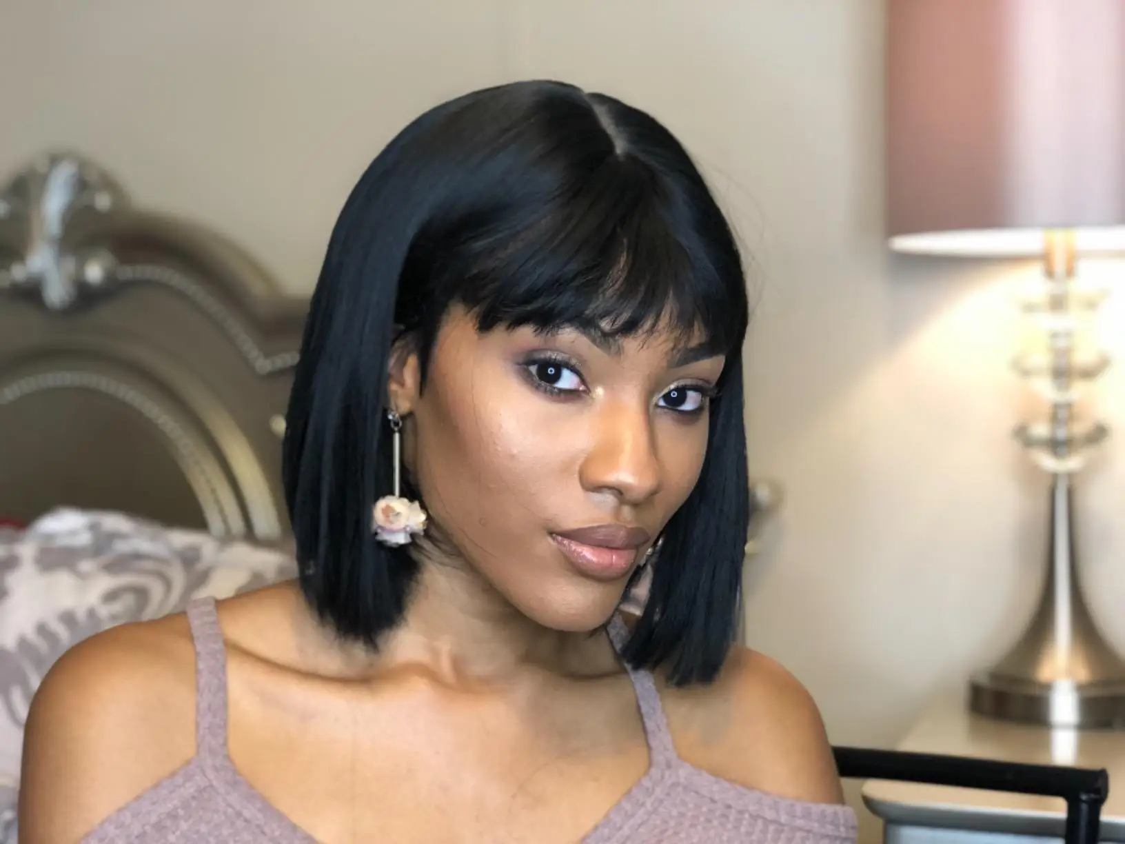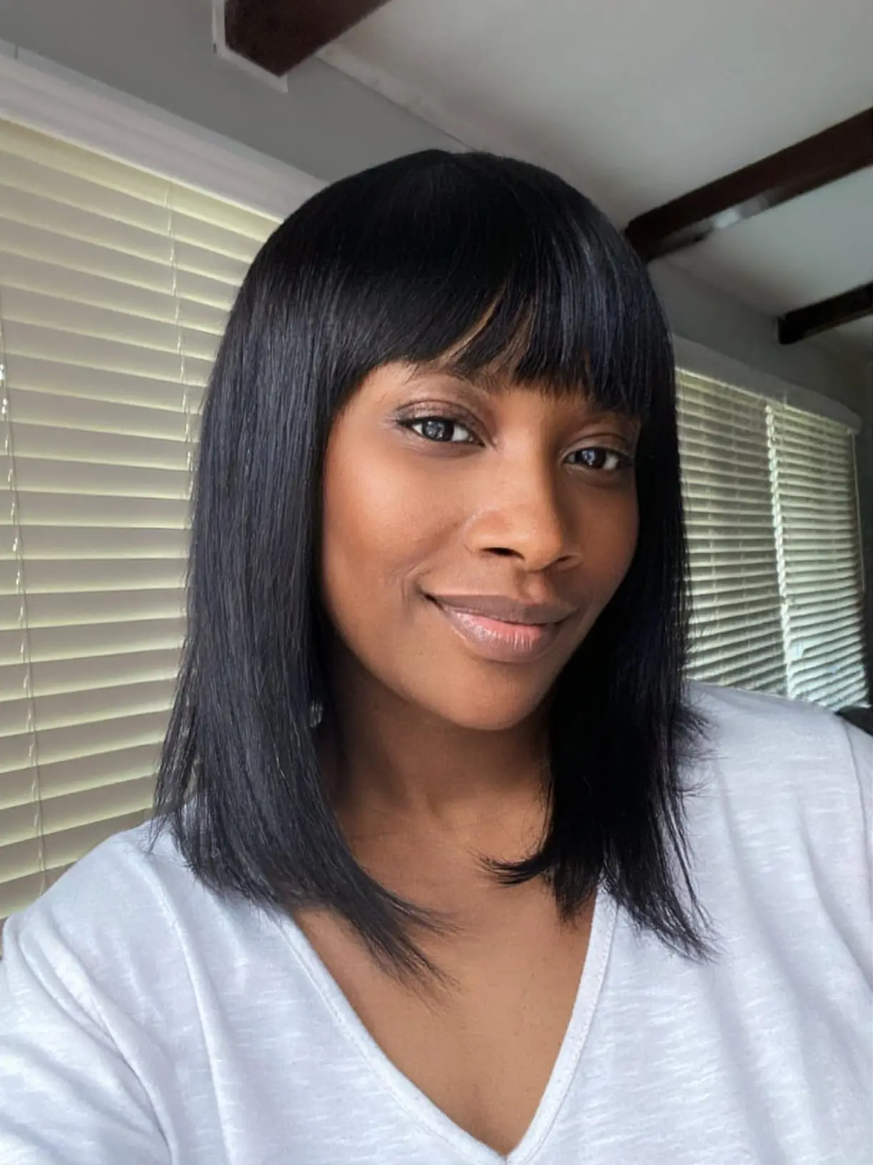 Machine made bob wig with a bang black color 100% Virgin Human Hair 150% density