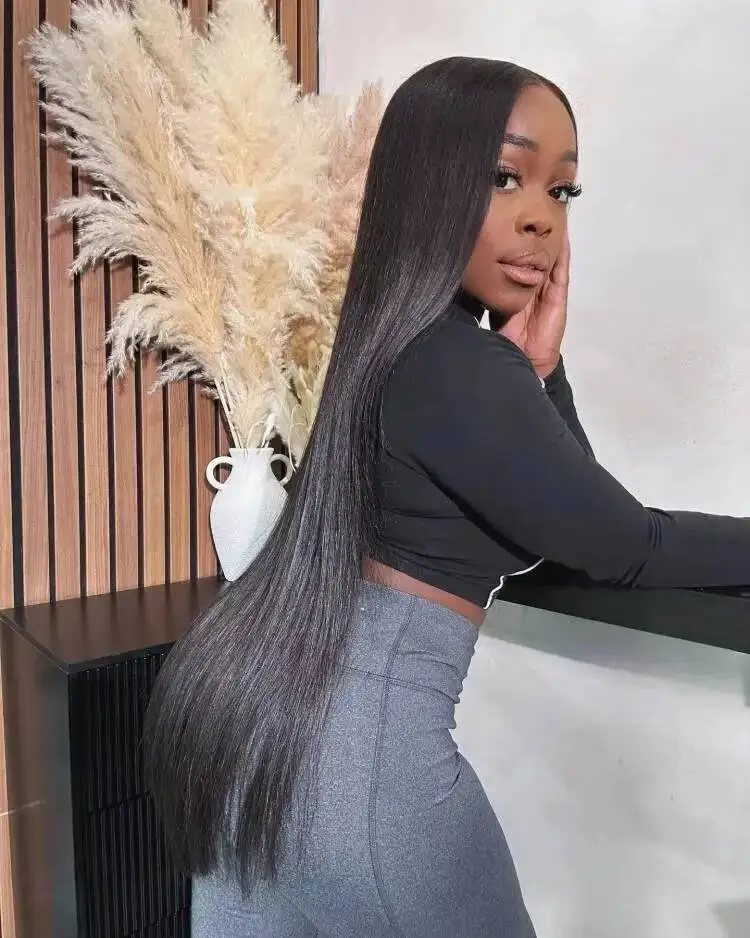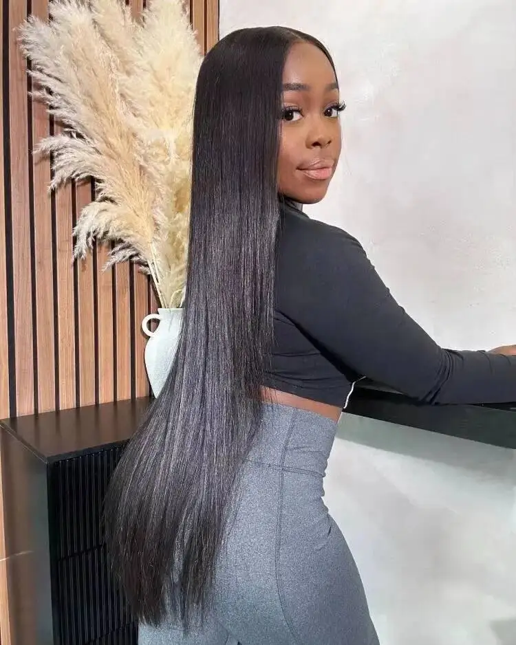 straight natural black color Lace Frontal 13x4 Virgin Human Hair Wig 15A