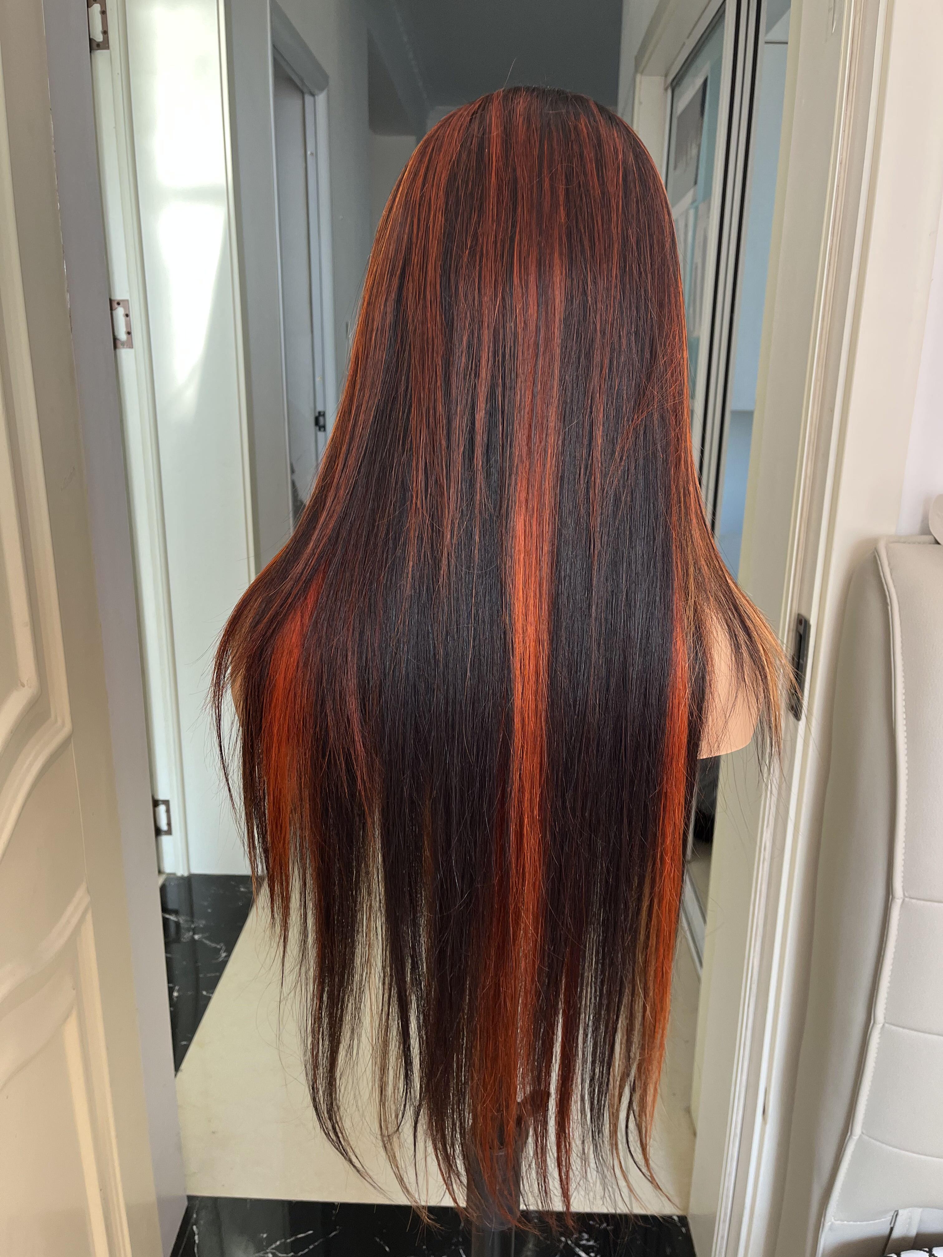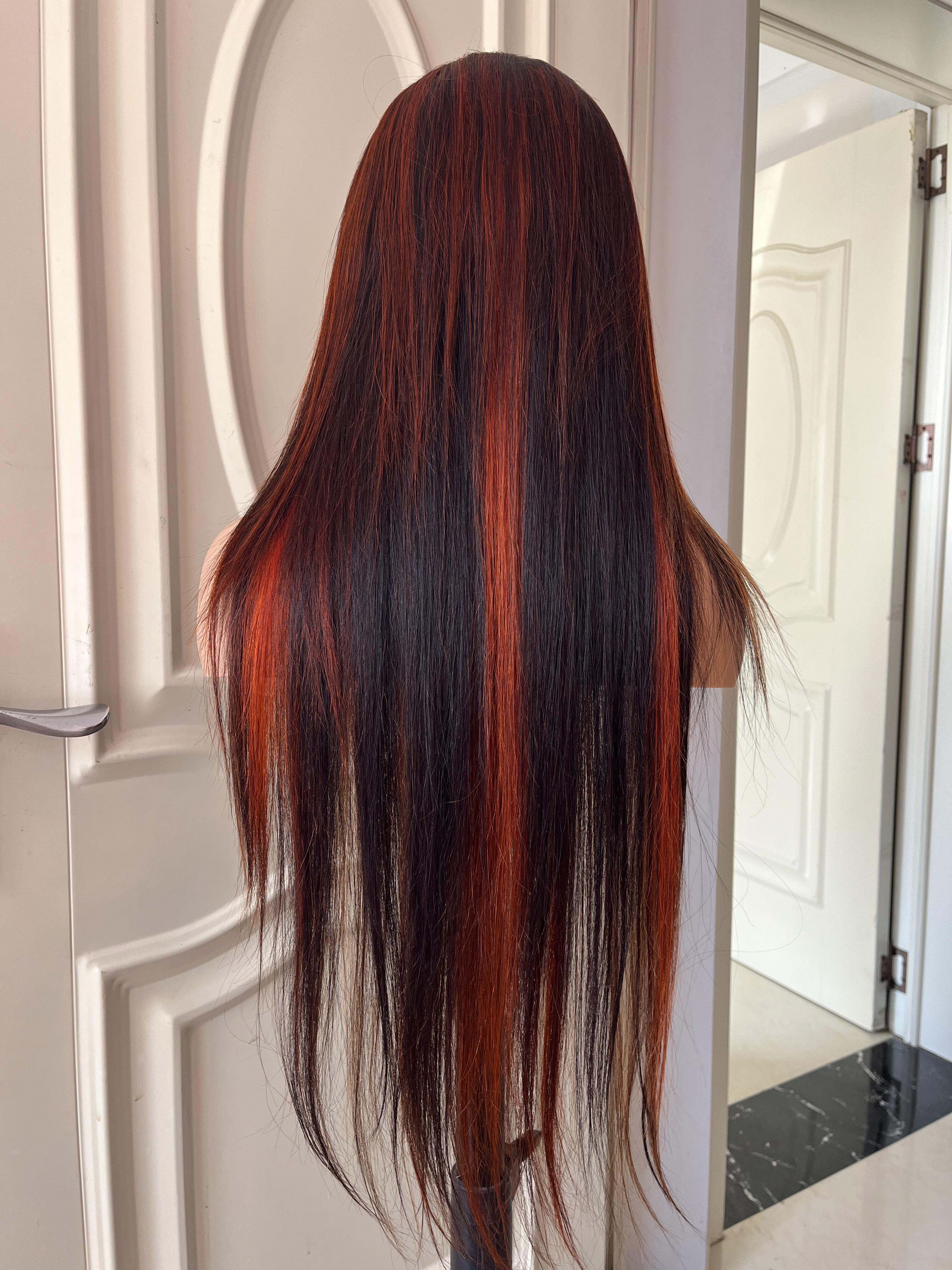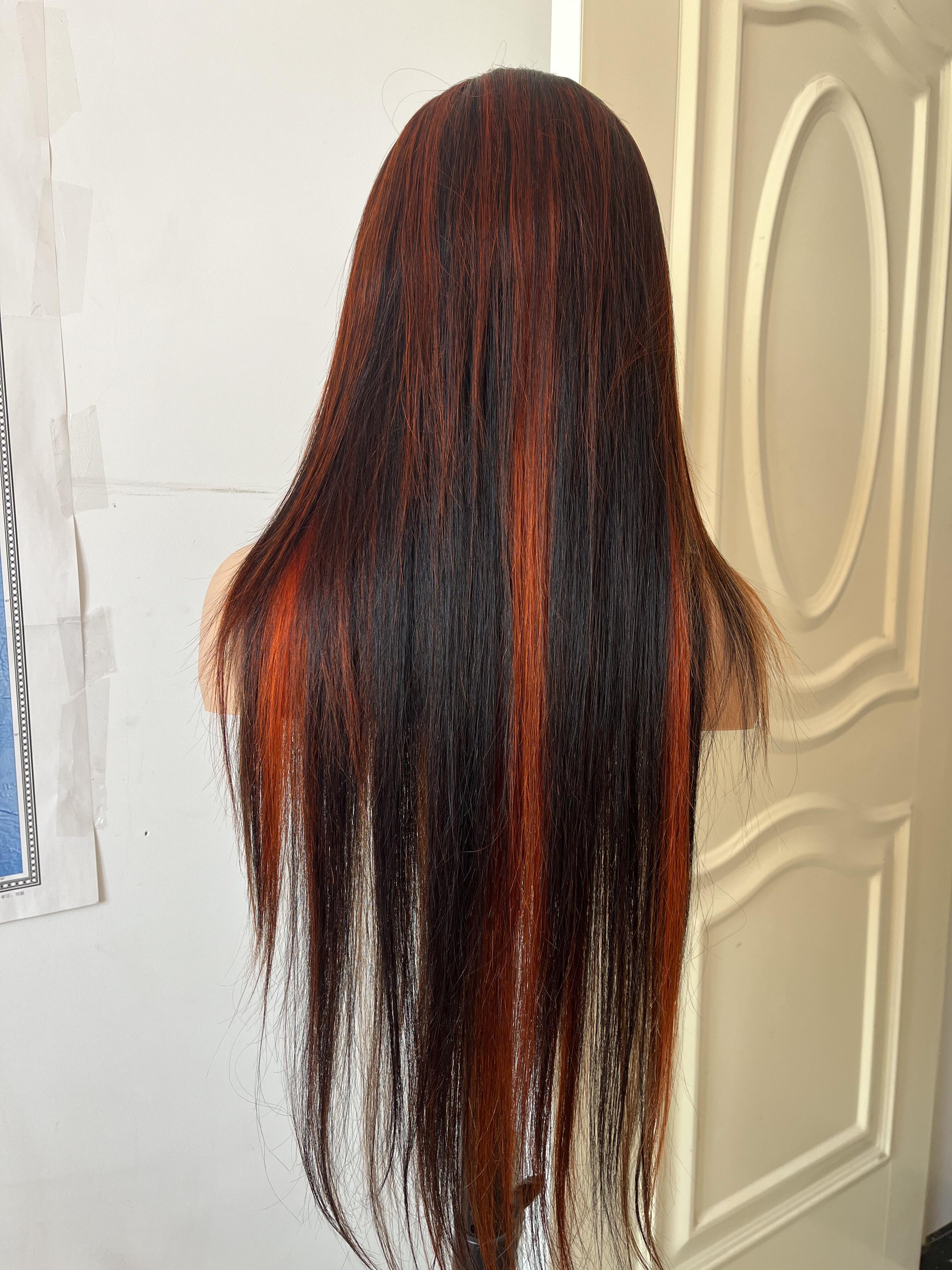 Human Hair Wig 12A straight highlight 1b/30 color